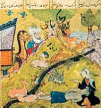 The case of Mohammad Fuzuli (1480-1562) is different. He is the only one of the great poets who left behind him three divan (books of poems), one in Azeri, another in Persian and the final in Arabic. Fuzuli was born and died in Baghdad. Somehow he managed to be on good terms with the officials of three successive governments - the Akkoyunlu (Saljuk Turkoman tribe), the Safavi (1508) and the Ottomans (1534).Fuzuli never hesitated to practice the art of "madah" (apology) and use poetry at the service of his high protectors. This was a sort of cultural necessity. But he was, nonetheless, a major poet of the Azeris and of the Ottomans (whose literary language was much closer to classical Azeri than modern Turkish is now). Three centuries after Nizami, Fuzuli's Leyli and Majnun played for Turkic peoples the same role as Nizami's had for Persian-speakers.