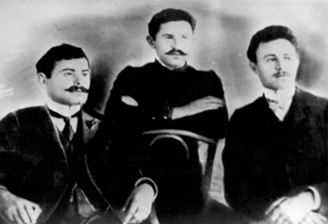 Above: Jeyhun and Uzeyir Hajibeyov - brothers. Around 1908. Courtesy Clement Bailly, grandson of Jeyhun in Paris.Below: Three Hajibeyov Brothers - Left to right: Zulfugar (1884-1950), Jeyhun (1891-1962) and Uzeyir (1885-1948). Photo in 1910s. Courtesy: Hajibeyov Home Museum.